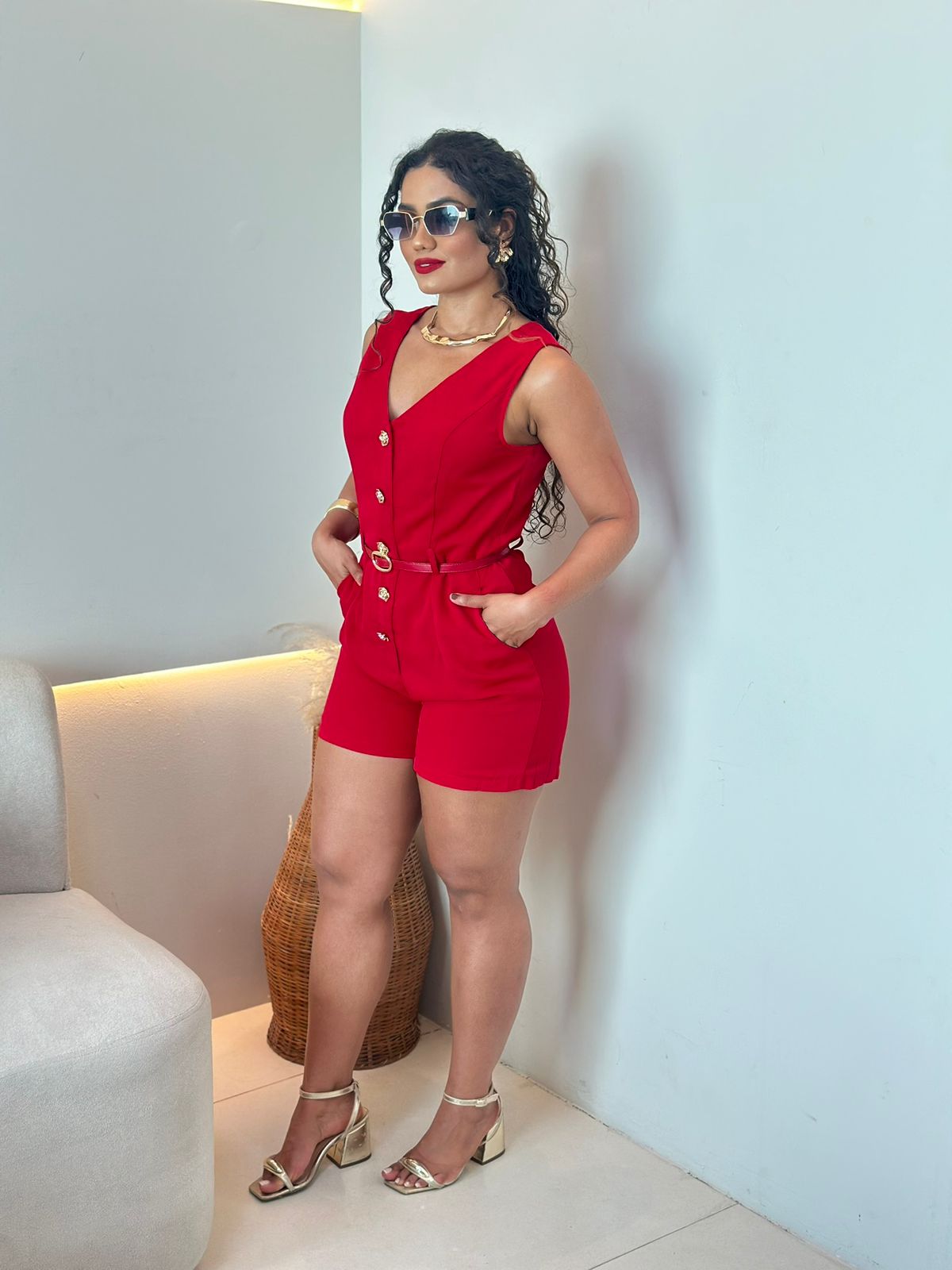 MACACÃO TECIDO IMPORTADO, FORRADO, COM BOTÕES FUNCIONAIS E ACOMPANHA O CINTO.